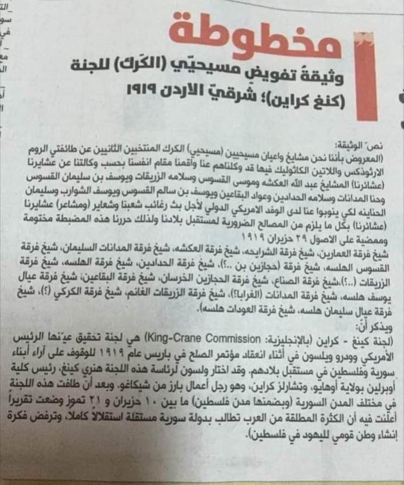 مخطوطة ثانية ترفض تقرير مصير سورية وتطالب بدولة عربية في سورية الكبرى. وترفض إنشاء وطن قومي لليهود في فلسطين.